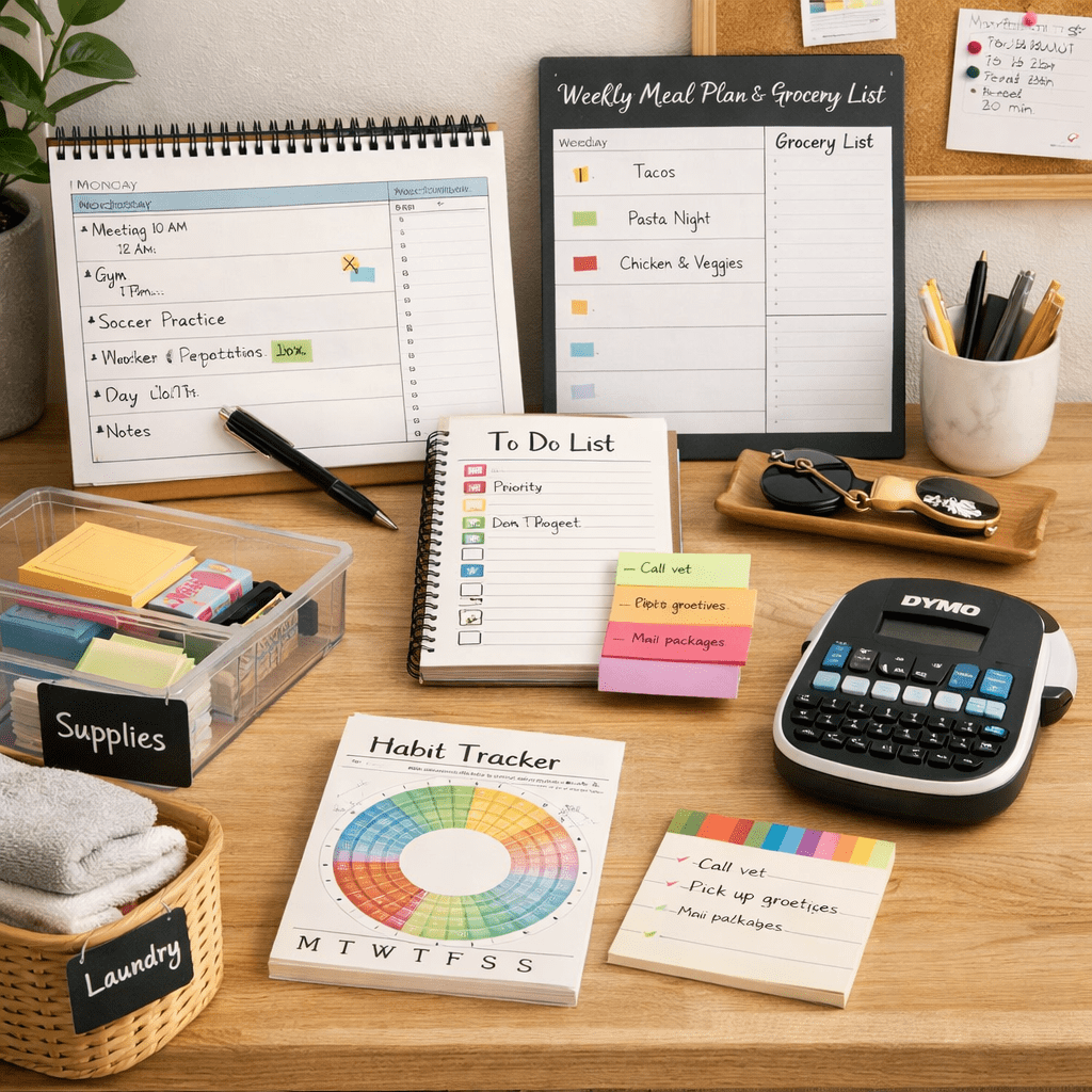 If you’re feeling overwhelmed, start with just one category — a planner, a to-do list, or a simple organization bin — and build from there. Small changes really do add up.